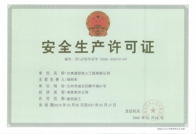 甘肃建研岩土工程有限公司《安全生产许可证》